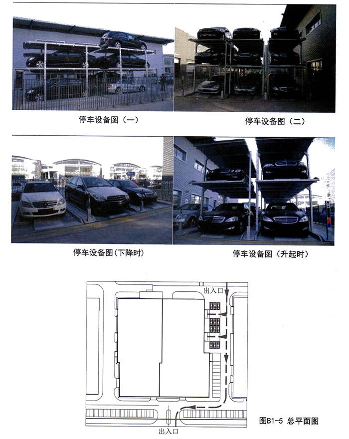 該車庫采用了帶地坑三層升降類停車設(shè)備,平常地面上只有一層設(shè)備,其余兩層降至地面以下,需要時再升上地面。此設(shè)備不同于升降橫移設(shè)備,不設(shè)空位,因此容納車數(shù)多。