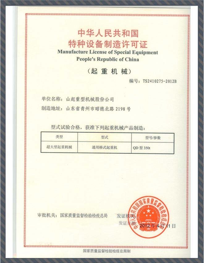特種設(shè)備制造許可證